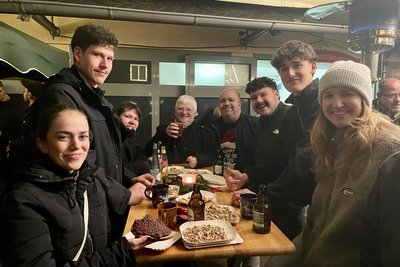 Der Nikolaus durfte selbstverständlich auch nicht fehlen,der die Kinder mit Tüten voller Leckereien überraschte. Zwischenzeitlich drang auch der Duft von Glühwein und Bratwürsten, sowie Grumbeereworscht durch die Luft. Mit viel Fleiß und Eifer wurden die Gäste versorgt. Es gab viele gute Gelegenheiten für eine Schwätzchen und neue Gesichter kennen zu lernen. Statt centgenau zu bezahlen stand ein Spendenschwein bereit. Der Erlös des Abends wird wieder einem karitativen Zweck zugeführt. Vielen Dank an alle Spender.