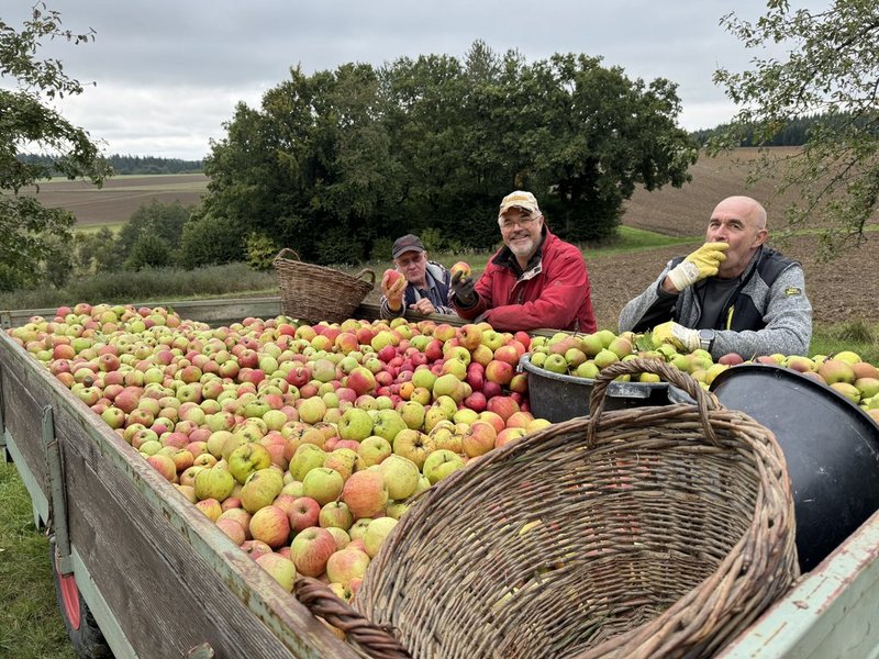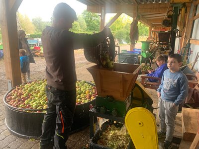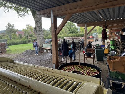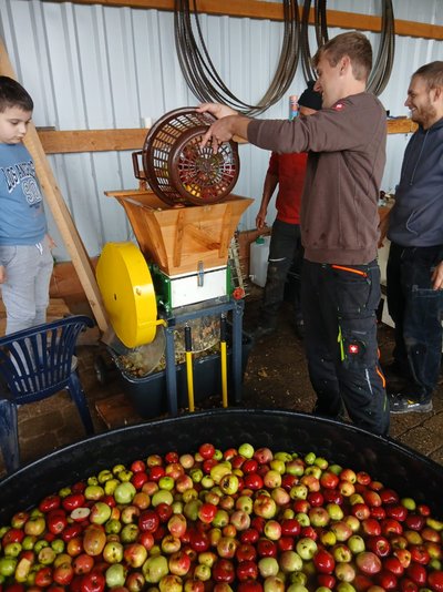 Bereits Tage zuvor hatten einige schon angefangen Äpfel zu ernten. Diese wurden dann den ganzen Samstag über beim Adam gepresst.