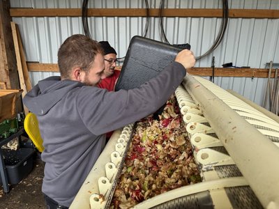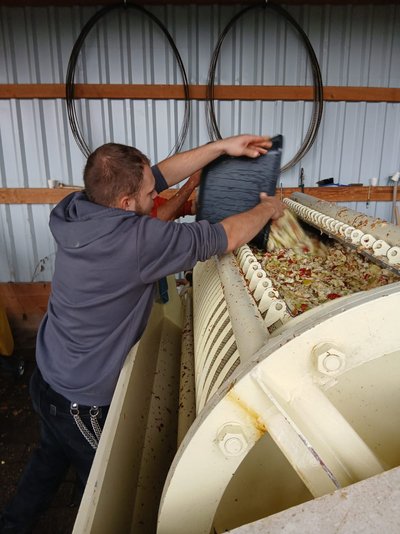 Zuerst mussten die Äpfel durchgeschaut und aussortiert werden, danach wurden diese gewaschen und geschreddert.