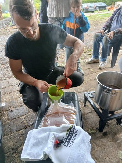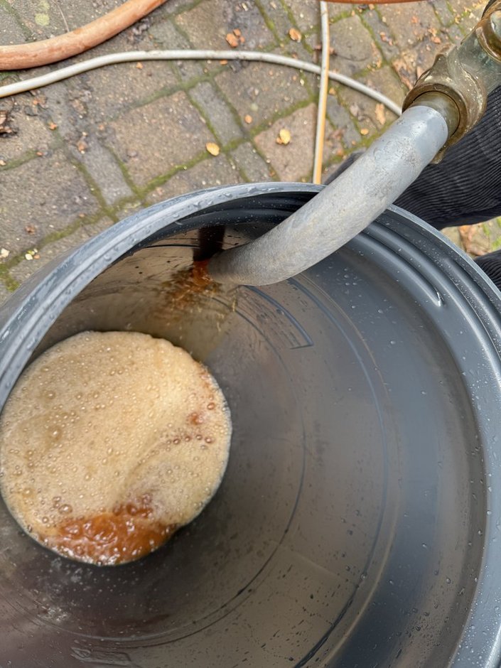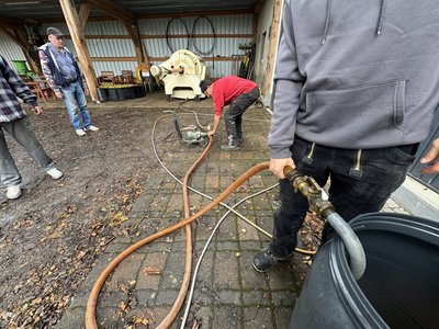 Anschließend konnte die Presse damit gefüllt werden. Zum Schluss wurde der Saft dann in Fässer gepumpt und erhitzt damit er haltbar bleibt.