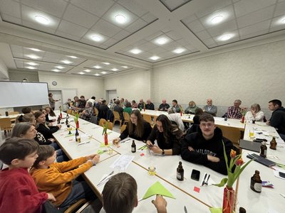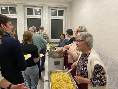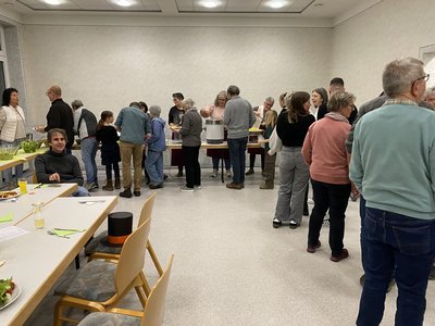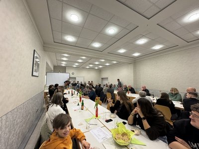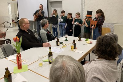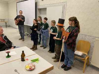 Danach gab es mit Hintergrundmusik von Steffen und Wiebke das Essen. Anschließend trat der Krasteler Kinder Chor auf und sang 3 Lieder.