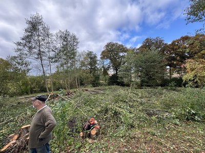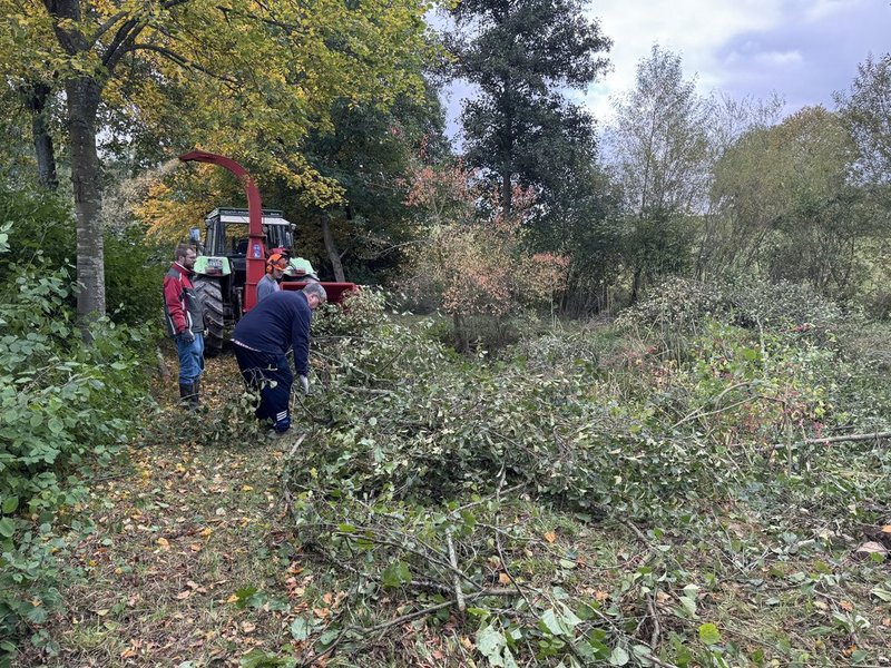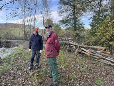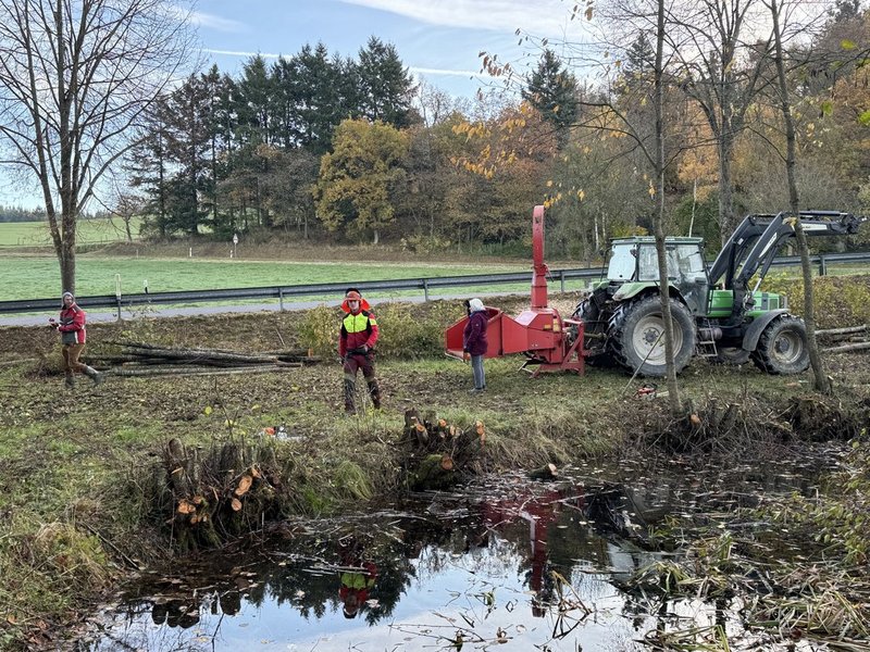 Im Vorhinein war die Ortsvorsteherin das Biotop mit dem Förster abgegangen, welcher dann bestimmt hat was ab kommt und was stehen bleibt.